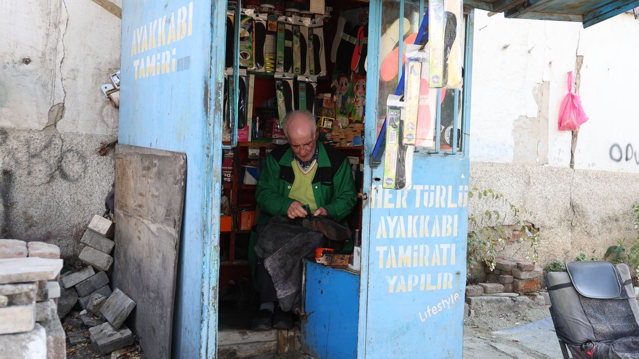 Elazığ'da 73 yaşındaki Hasan Aydın, 2 metrekarelik barakada 45 yıldır babasından devraldığı ayakkabı boyacılığı mesleğini sürdürüyor.