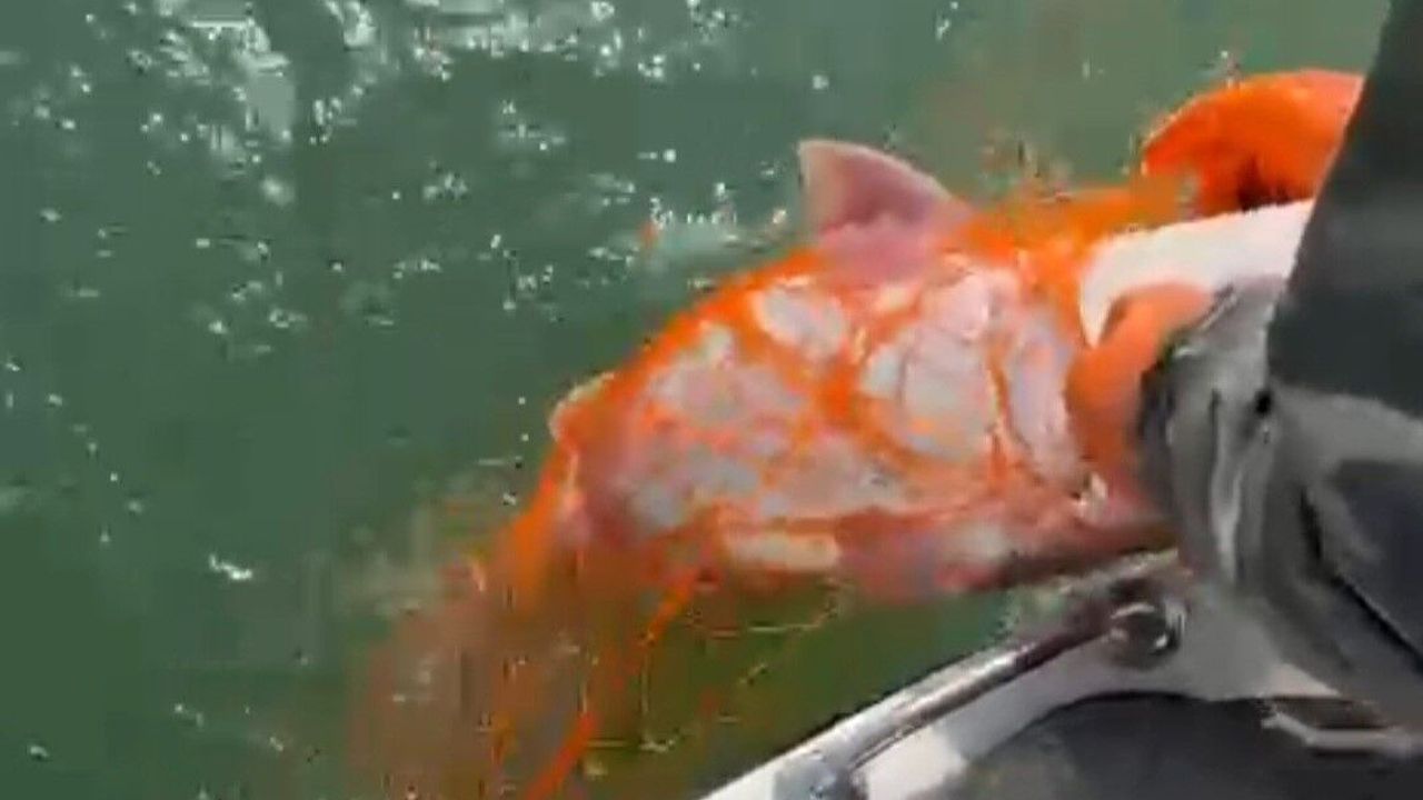 Elazığ'da amatör bir balıkçı, Keban Baraj Gölü'nde ava çıktı. Balıkçı çektiği ağda 1 metre uzunluğunda 30 kilo ağırlığında dev Fırat turnasını yakaladı. Tekneye çekerken oldukça zorlanan balıkçının o anları cep telefonu kamerasıyla kaydedildi.