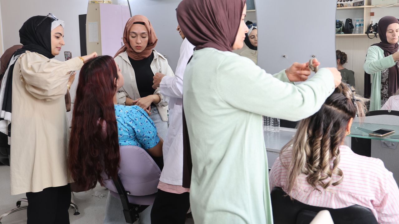 Hedefleri için yoğun bir şekilde çalıştıklarını aktaran 19 yaşındaki Tuğçe Yücel ise, "Ablamla benim bir hedefim var. Gelin hazırlama merkezi açmak istiyoruz. Ablamla kuaförlük adına ne varsa o alanlarda kendimizi geliştirmek için geldik. Burada kendimizi iyice geliştirdik ve gelin hazırlama merkezinde işe girdik. Ben başörtüsü üzerinde kendimi geliştiriyorum ablam da makyaj üzerine kendisini geliştiriyor. Burada boyayı, kaş alımı ve saç kesimini öğrendik. Bütün alanlarda kendimizi geliştirdik geliştirmeye de devam ediyoruz. Buradaki kursum tamamlandıktan sonra kendimizi biraz daha geliştirip kendi iş yerimizi açmak istiyoruz" cümlelerini kullandı.