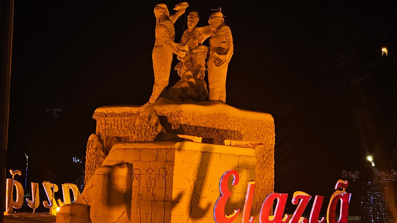 Elazığ'da kar yağışı etkili olurken kent beyaza büründü. Elazığ’ın tüm ilçelerinin isimlerinin yer aldığı ve kentin simgesi olan Çaydaçıra efsanesini temsil eden heykelin bulunduğu kavşak; beyaza bürünen görüntüsüyle dikkat çekti.