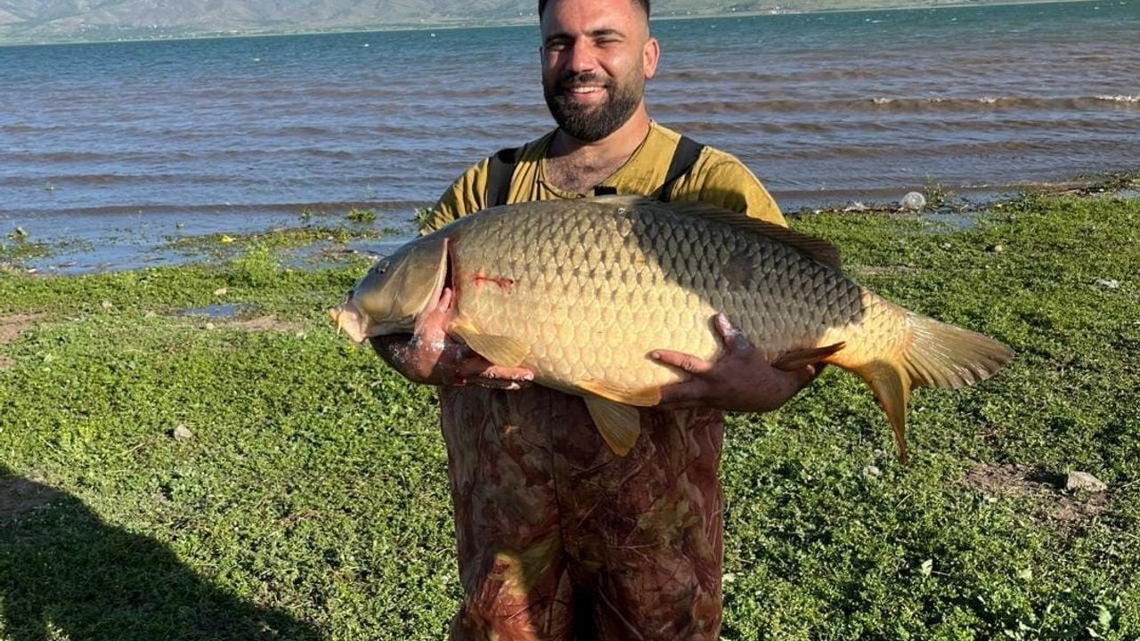 Elazığ’da amatör balıkçı, Keban Baraj Gölü’nde 32 kiloluk dev sazan balığı yakaladı.