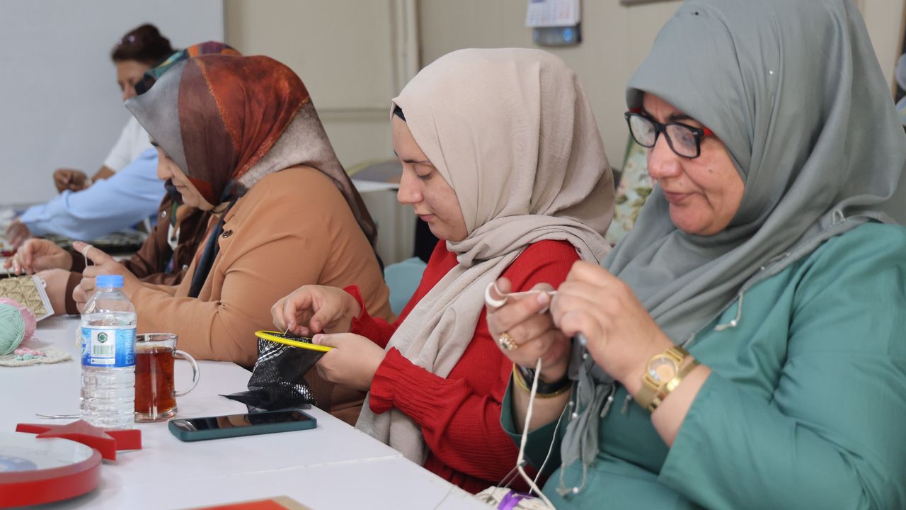 Elazığ'da kadınlar, Halk Eğitim Merkezi Müdürlüğü tarafından açılan El Sanatları Kursu'nda bir yandan sosyalleşirken bir yandan da öğreniyor.