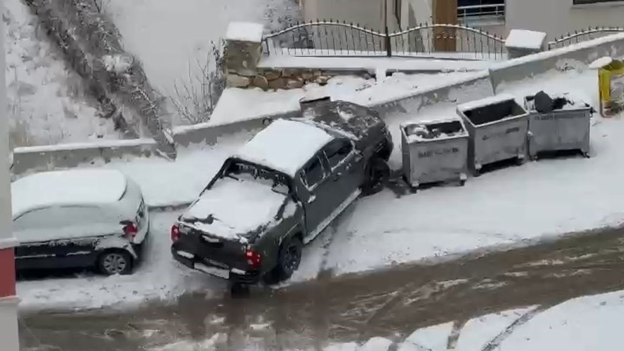 Elazığ’da kar yağışı sonrası kayganlaşan yollarda kayan araçlar vatandaşların cep telefonu kamerasına yansıdı.