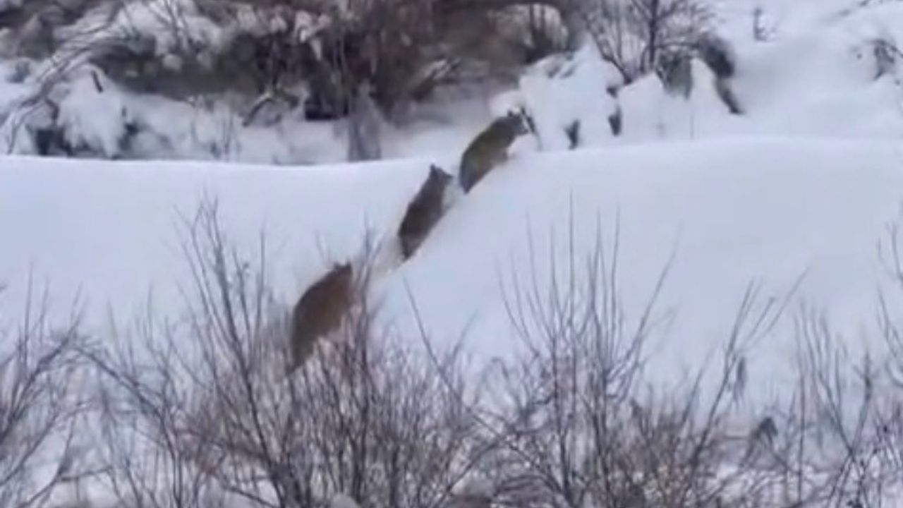 Doğada yiyecek bulmakta güçlük çeken kurtlar, Elazığ’ın Gözeli köyüne bağlı Tarlatepe mezrasında görüldü. Karların arasında yürüyen kurt sürüsü bir vatandaşın cep telefonu kamerasına yansıdı. Kurt sürüsü, bir süre sonra gözden kayboldu.